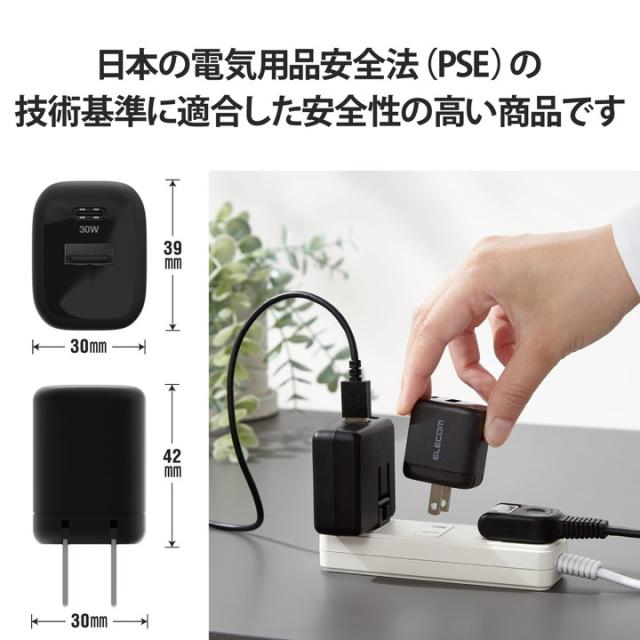 【在庫処分・お買い得!】 エレコム AC充電器 USB PD 30W Type-C 1ポート USB-A 1ポート スイングプラグ ブラック┃MPA-ACCP30BK