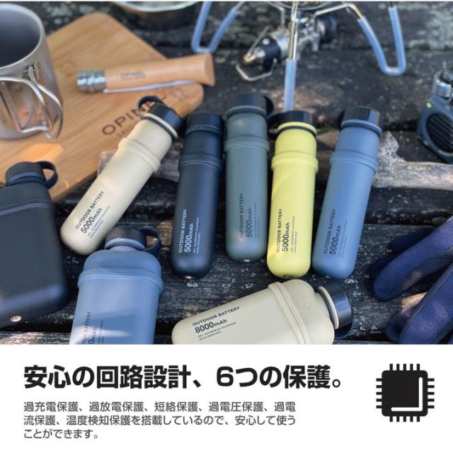 アウトドアシーンに最適な防水・防塵・耐衝撃のモバイルバッテリー。リチウムイオン電池を衝撃や振動から守るクッション構造とJIS保護等級IP67相当の防水防塵性能で、屋外での落下や水濡れからバッテリーを守ります。別売りのパーツを取り付けると、LEDランタンなどのアウトドアギアとして使えるアウトドア特化型モデルです。