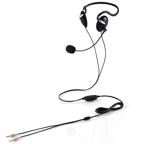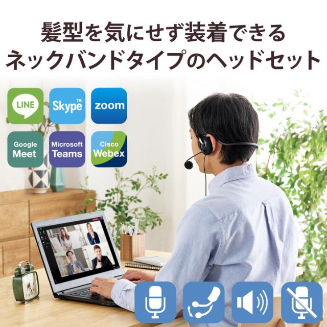 オンラインゲーム、Web会議、音声チャットに最適!髪型を気にせず気軽に装着できる3極ミニプラグ×2を搭載したネックバンドタイプのヘッドセット。