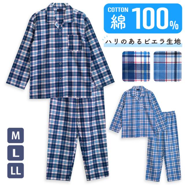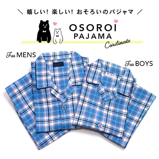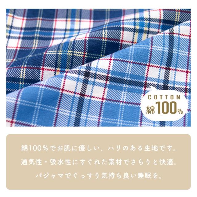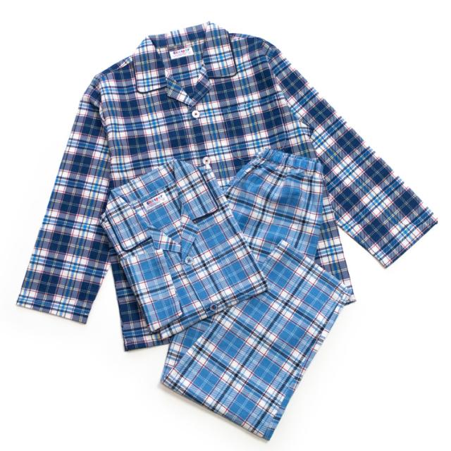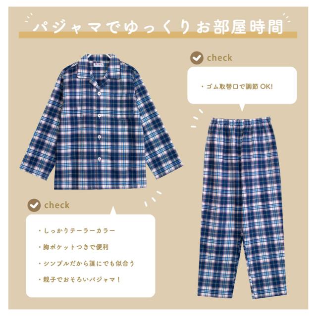 パジャマ キッズ 男の子 綿100% 長袖 春 秋 前開き 大格子柄 ブルー ネイビー 100 110 120 子供 ジュニア ボーイズ かわいい おそろい メール便なら 送料無料