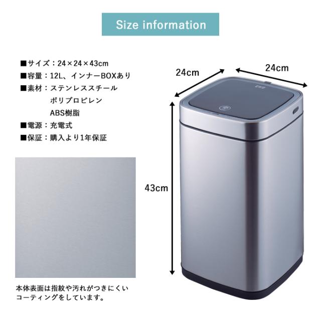 EKO センサー式 ゴミ箱 エコスマートX 充電式 センサービン 12L 自動開閉 自動ゴミ箱 EK9252RGMT-6L-3775 【送料無料】USB 充電式 電動 ダストボックス 非接触 自動オープン インナーボックス付 静音 清潔 ふた付き ごみ箱 1年保証 EKO JAPAN 正規代理店 agesugi_sis