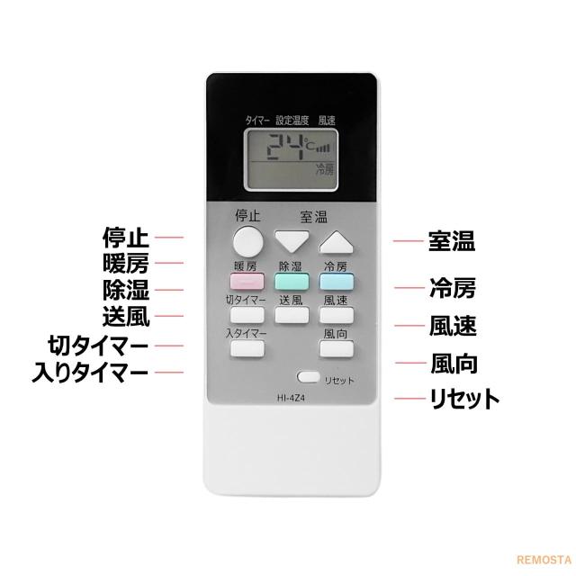 日立 エアコン 白くまくん リモコン RAR-4Z4 RAS-L22EE3-003 電池付き RAS-A28F RAS-A40F2 RAS-F22F RAS-F25F RAS-F28F RAS-F40F2 RAS-KJ22G RAS-KJ25G RAS-KJ28G RAS-KJ36G RAS-KJ36D RAS-KJ40D2 RAS-KJ22E RAS-KJ40C2 RAS-KJ22D など HITACHI 互換 代用リモコン REMOSTA
