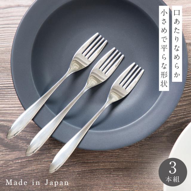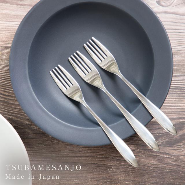 燕三条 フォーク 3本組 セット ステンレス パスタ カトラリー ミディアムフォーク 食べやすい 薄い 口あたり良い 日本製 食洗機対応 小さめ おしゃれ シンプル 高級 TSUBAME ミディアムフォーク 3本組 デザートフォーク メール便対応