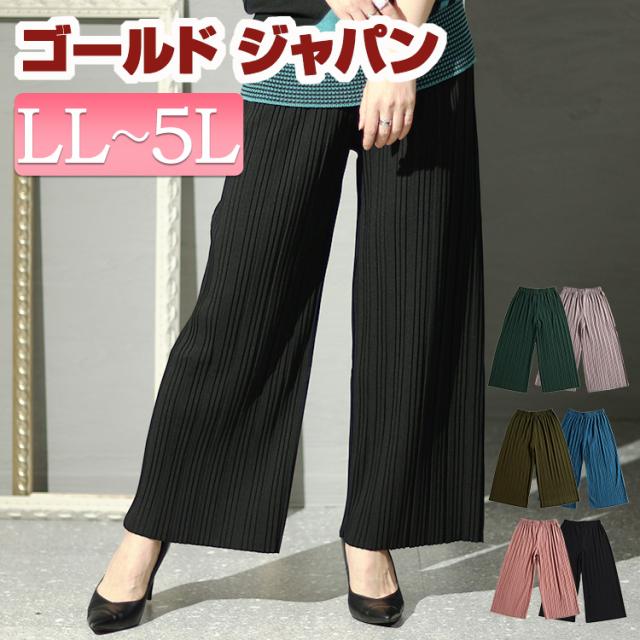 秋新作 大きいサイズ レディース ボトムス パンツ セルフカットプリーツパンツ ロングパンツ ロング プリーツ セルフカット カット 低身長 ストレッチ ウエストゴム 夏 春 秋服 冬 LL 2L 3L 4L 5L グリ-ン カーキ 緑 ブルー ピンク グレージュ ブラック 黒 ゴールドジャパン