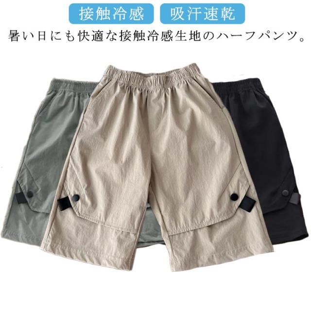 ハーフパンツ キッズ 接触冷感 半ズボン 子供服 男の子 ショートパンツ 短パン 5分丈 ハーフ丈 ズボン 薄手 吸汗速乾 ひんやり 涼しい こども服 子ども服 ウエストゴム シンプル 無地 カジュアル スポーツ 通園 通学 春 春夏 夏 夏服 110 120 130 140 150 160 170 送料無料