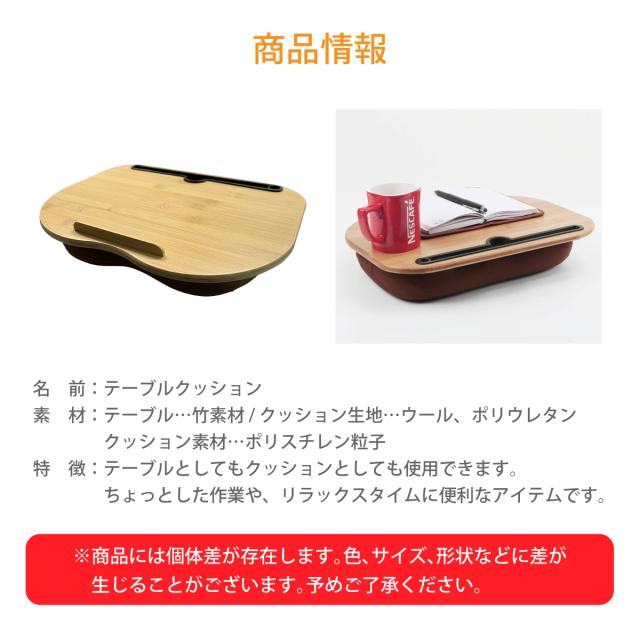 テーブルとクッションが一緒になった。どこでも使いやすい便利なアイテムです。