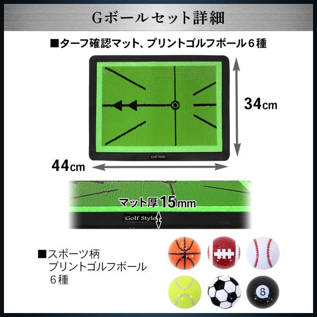 ターフ確認ゴルフマット、スポーツ柄プリントゴルフボール6種