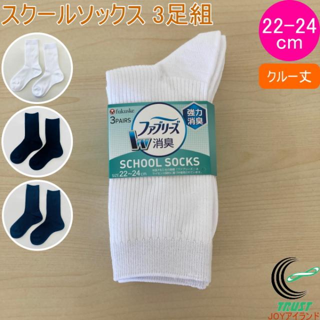 ファブリーズ 福助のキッズ用スクールソックス クルー丈 3足組 22-24cm 正規品 ソックス 福助 fukusuke ふくすけ FUKUSUKE 靴下 子供 子供用 学校 シンプル 無地 ファブリーズ 消臭 抗菌 防臭 3足組 ネコポス対応
