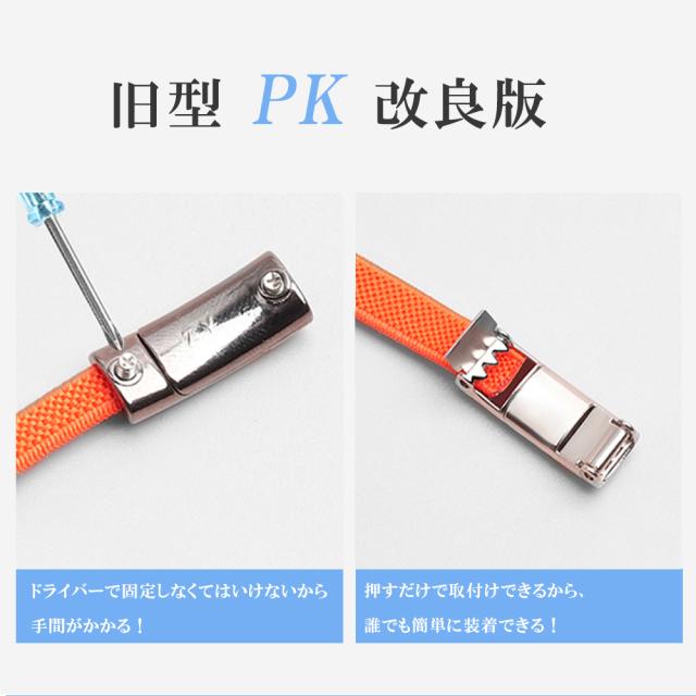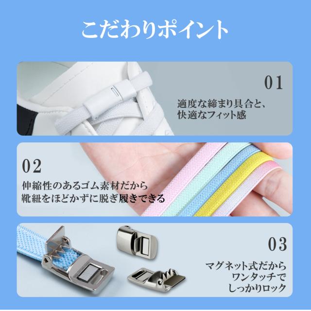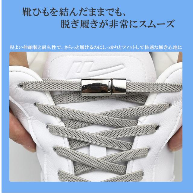 - マグネット部の操作も簡単でしっかりしてます。ヒモが伸縮性があり、ただのヒモより締め付け感がなくシューズの履き心地が良くなりました。履く脱ぐも楽になりました。
