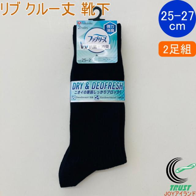 ファブリーズ 福助の紳士靴下 リブクルー丈 ブラック 2足組 25-27cm 27224W-090 正規品 ソックス 福助 fukusuke ふくすけ FUKUSUKE 靴下 紳士靴下 メンズ ファブリーズ 消臭 抗菌 防臭 シンプル 無地 2足組
