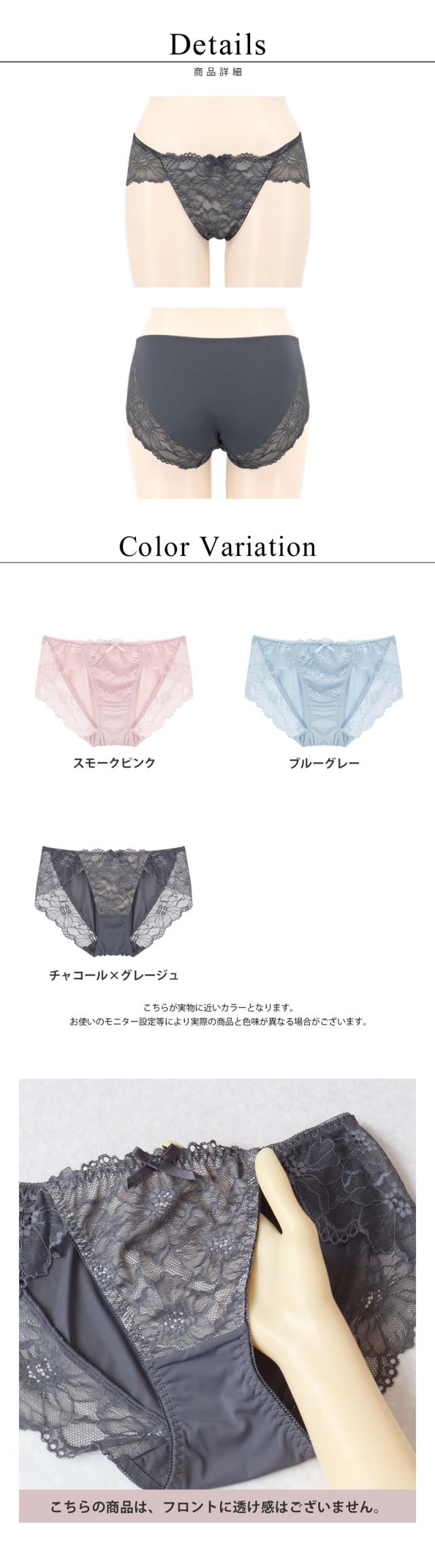 | 身体に溶け込むフラワーレースの魔法。 サイドはさりげなく素肌を覗かせエレガントなムードを醸し出す。 なめらかな履き心地のフルバックショーツはボトムにも響きにくくオシャレを邪魔しない |