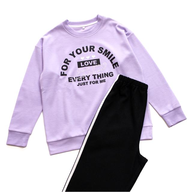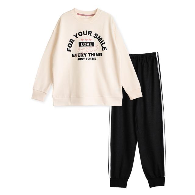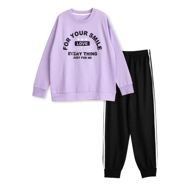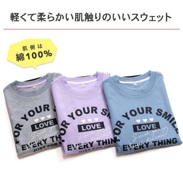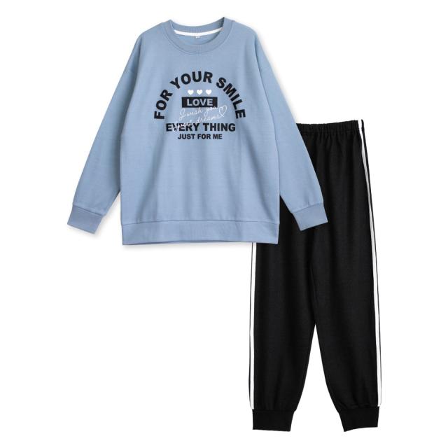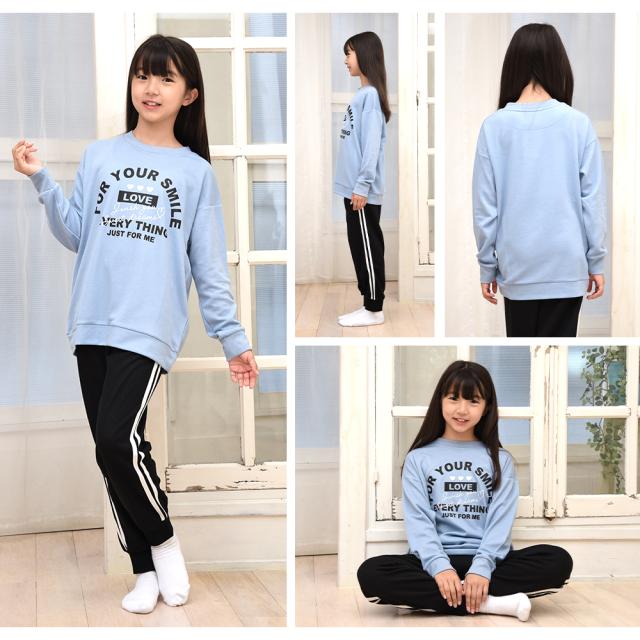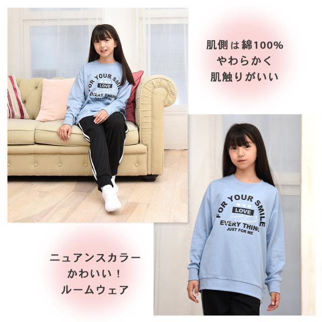 パジャマ キッズ 女の子 内側が綿100% 長袖 春 秋向き スウェット上下 リブ仕様 ニュアンスカラー ロゴプリント パープル 杢グレー アッシュブルー ナチュラル 130 140 150 160 子供 ガールズ ジュニア かわいい