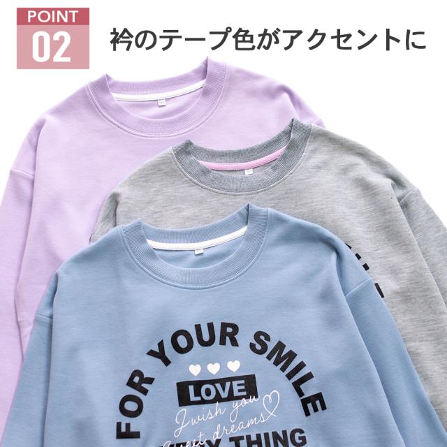 ●カラー:アッシュブルー/パープル/ナチュラル/杢グレー ●トップス仕様:長袖/チュニック丈/衿ぐりリブ/袖口リブ/プリント