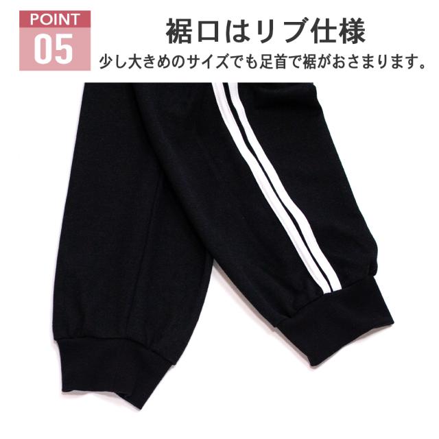 パンツの裾口はリブなので上にずりあがらず少しサイズが大きめだったとしても足首で裾がおさまります。