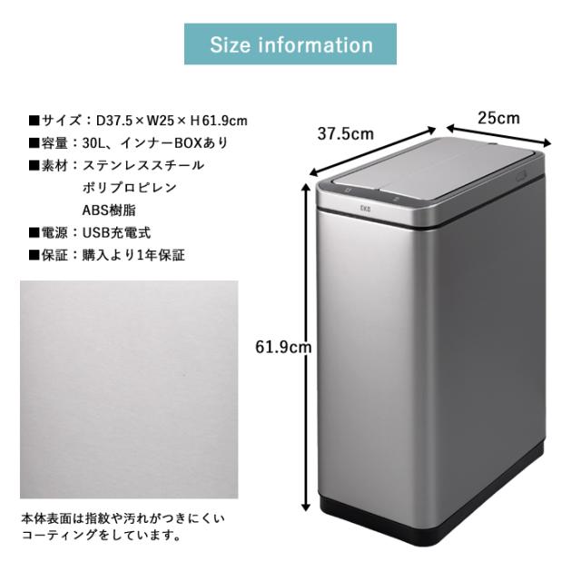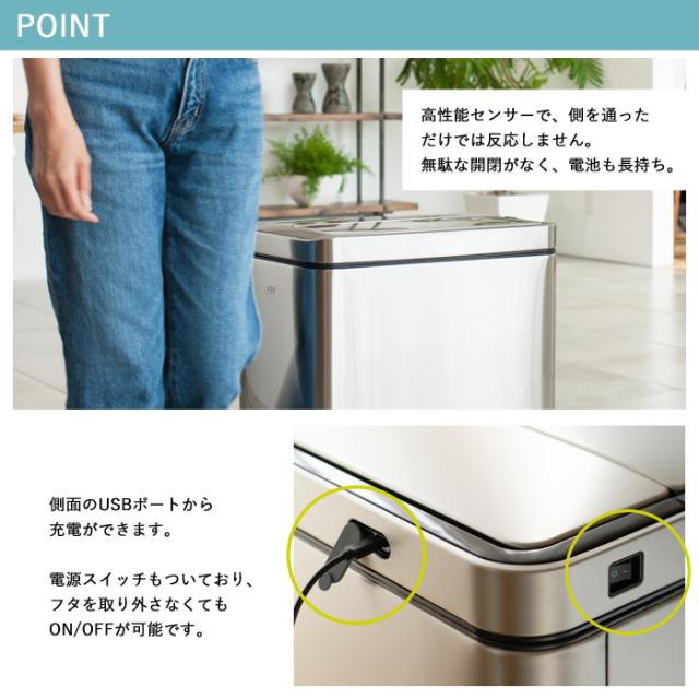 EKO センサー式 両開き 電動 ゴミ箱 30L エックスウィングセンサービン 自動開閉 EK9387RMMT-30L-8146 【送料無料】USB 充電式 自動開閉 自動ゴミ箱 縦型 おしゃれ シンプル ダストボックス 非接触 静音 清潔 ごみ箱 1年保証 EKO JAPAN 正規代理店