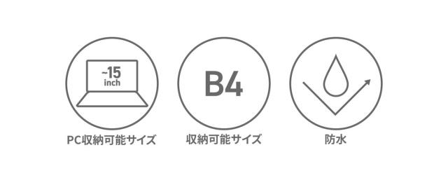 | 仕様 | <外側> ポケット(S)×2 <前面収納> ポケット(L)×1 ジップポケット(S)×1 ポケット(XS)×2 <背面収納> PC収納×1 |
