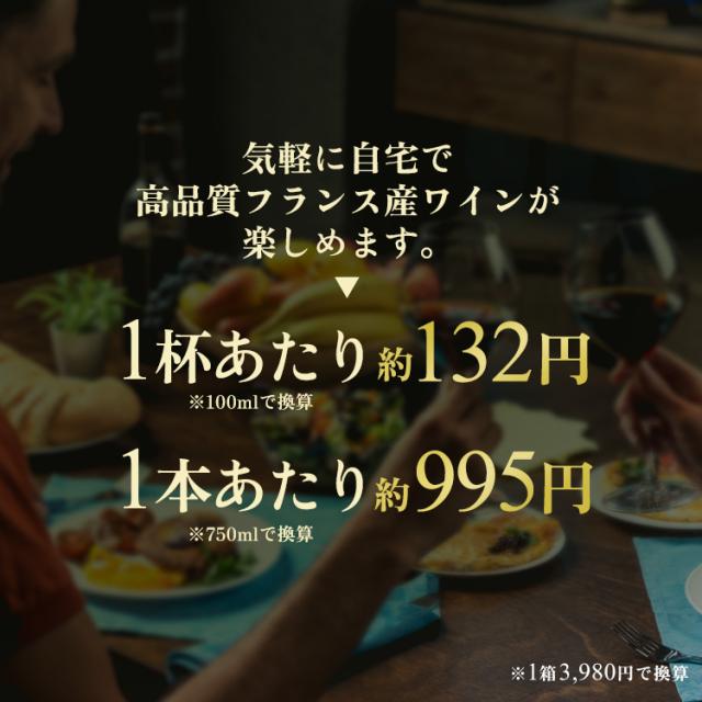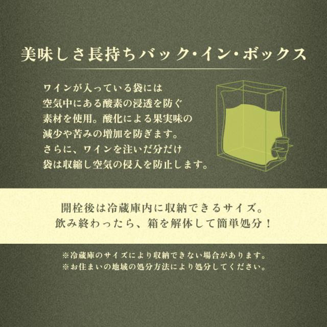 - セールで見つけて安く美味しいワインが買えました。瓶で買うとゴミ捨てが大変なので助かります。大容量なので長く楽しめます♪