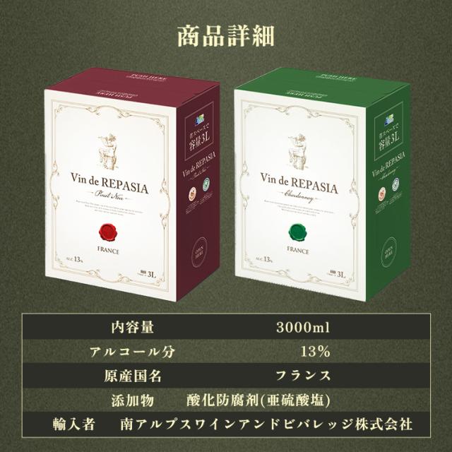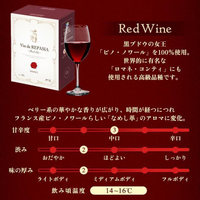 ワイン 赤ワイン 白ワイン 3L 3,000ml Vin de REPASIA Rouge BIB 赤ワイン 赤 白 ワイン ピノ・ノワール ピノノワール BIB ワイン 大容量【訳あり】
