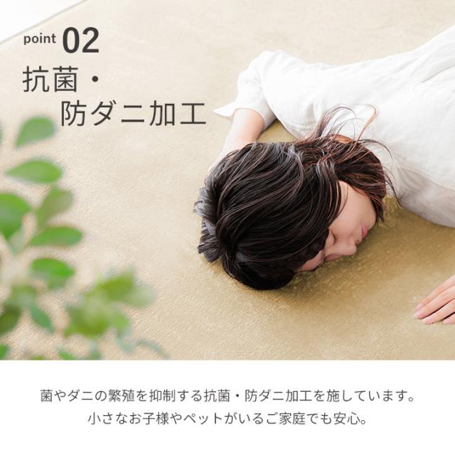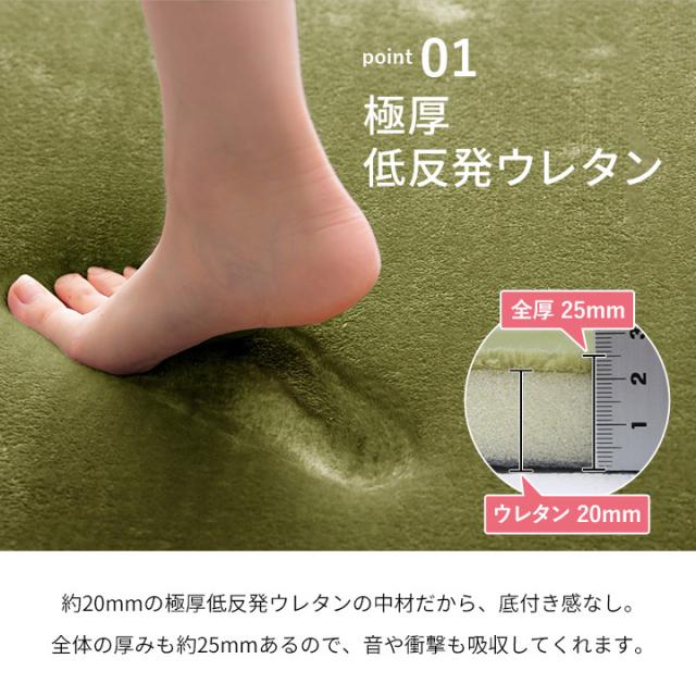 | ■8色から選べる極厚もちもち低反発ラグ。 ■吸い付くようななめらかな手触りです。 ■中材は約20mmの低反発ウレタンを使用しているので、底付き感がありません。柔らかい感触とボリューム感をお楽しみください。 ■保温性も高いのでこたつの敷布団としてもお使いいただけます。 ■裏面は安心のすべり止め加工。 ■ラグの厚みが約25mmあるので、音や衝撃も吸収してくれます。マンションやアパートにお住いの方にもおすすめ! ■安心の抗菌・防ダニ加工済み。 ■毛足が短いので、ゴミが絡みにくく楽々お掃除ができます。 ■撥水効果があるので小さなお子様やペットがいるご家庭でも安心! ※防水ではありません。しばらく放置すると中に浸み込みますのでご注意ください。 |