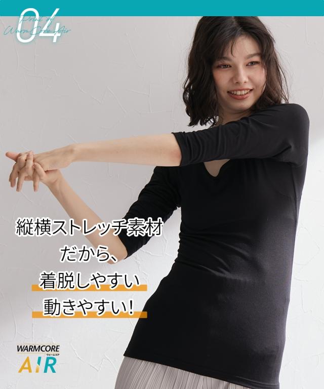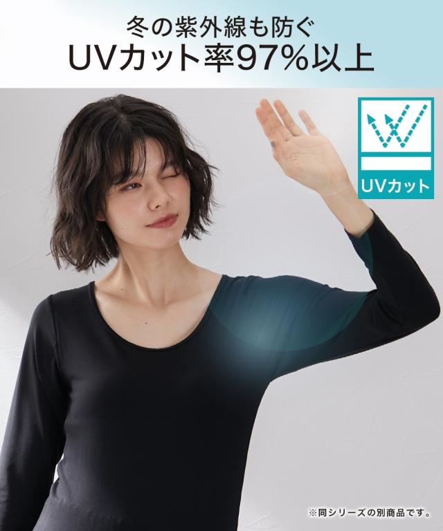 大きいサイズ レディース 暑がりさんの冬 インナー 襟ぐり広め丈長め7分袖 2枚組 吸湿発熱 吸汗速乾 UVカット ウォームコアAIR 夏 黒2枚 4L/5L/6L ニッセン nissen