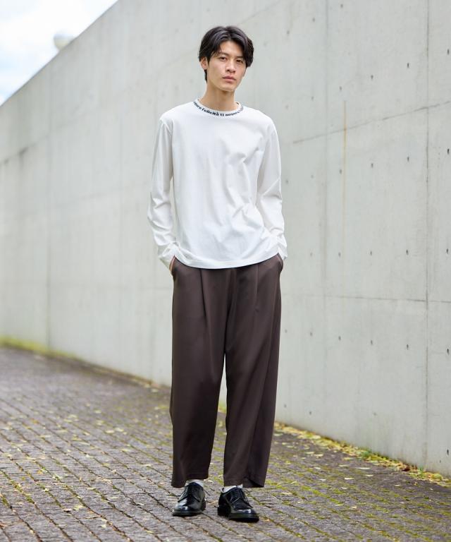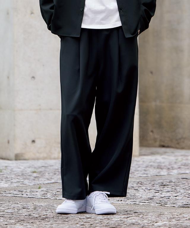 [keyword] メンズファッション 標準サイズ 普通サイズ 大きいサイズ ゆったりサイズ プラスサイズ フルレングス おしゃれ ワイド ストレッチ 伸び [comment] タック入りで上品にキマるワイドスラックス。