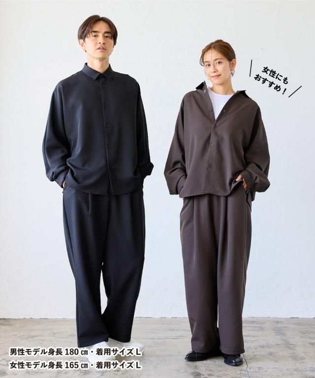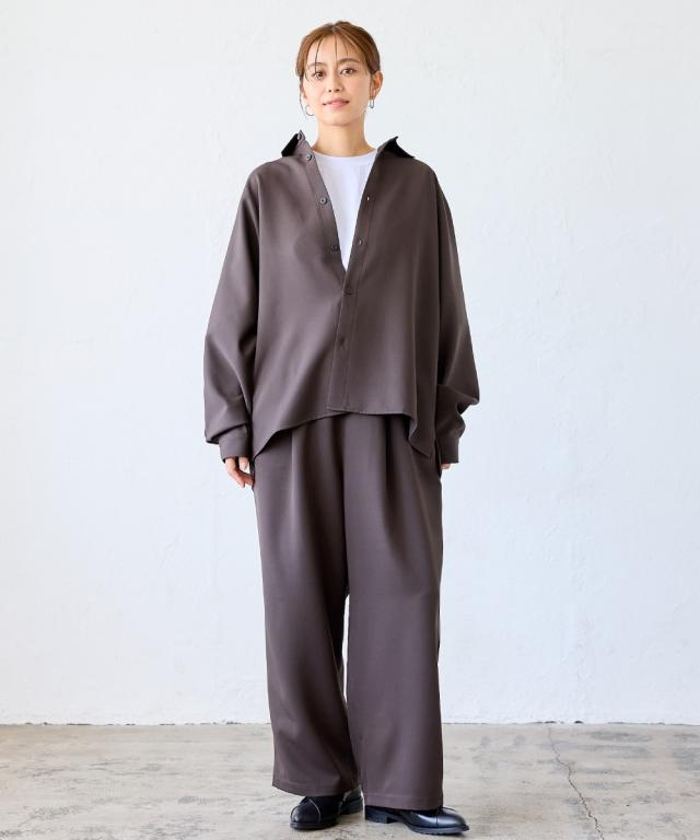 セットアップ対応のオーバーサイズ長袖シャツと着合わせれば、こなれた雰囲気のコーディネートが実現します。