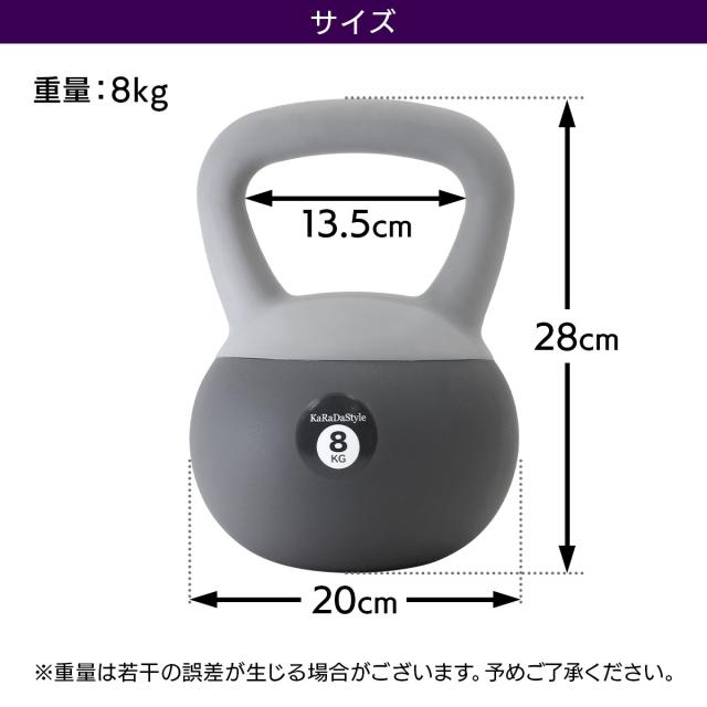 | 商品名 | ケトルベル ソフトタイプ 8kg ワイドハンドル 握りやすいグリップ トレーニング ソフトケトルベル 器具 ウエイト 体幹 持久力 筋肉 筋トレ バランス エクササイズ 自宅 ジム ソフト やわらか素材 防傷 PVC |