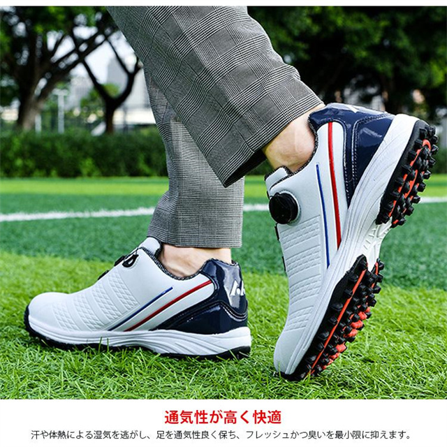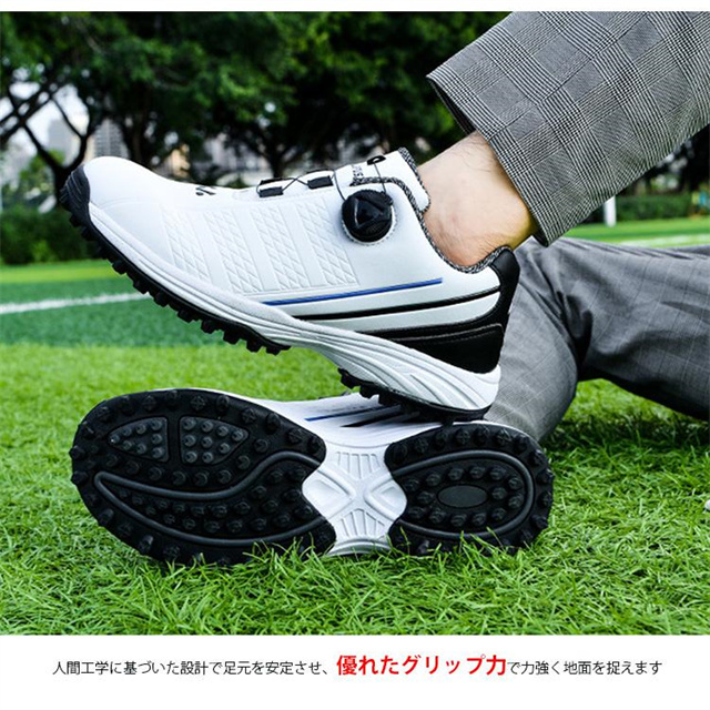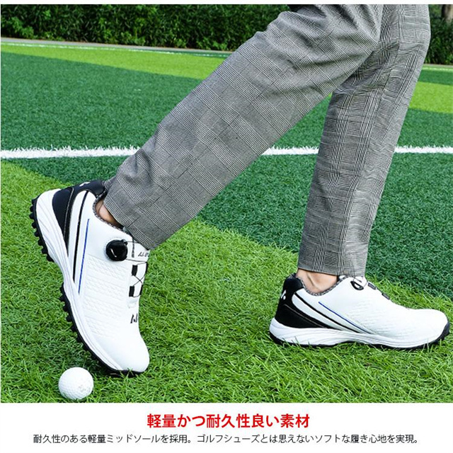 ゴルフシューズ メンズ レディース ダイヤル式 スニーカー 大きいサイズ 幅広い スパイクレス フィット感 軽量 動きやすい 防水 耐久 練習場 白 黒 おすすめ