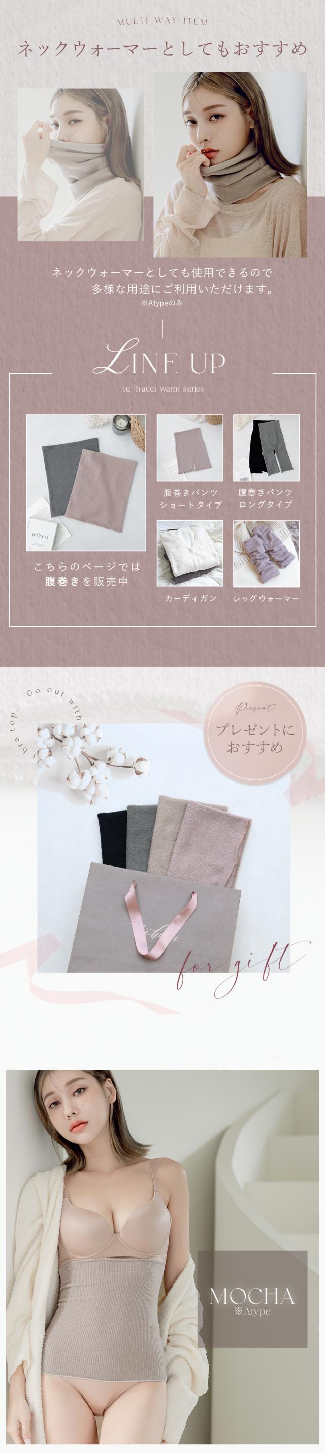 tu-hacci Warm Collection 腹巻き 履いた瞬間“温かさ”を実感 【こんな方におすすめ】 ・冷えが気になる方 ・着ぶくれしない腹巻きを探している方 ・肌あたりの良い素材を求めている方 ■使用シーンが広がる2wayタイプ ネックウォーマーとしてもお使いいただけ、様々なシーンで活躍。 伸縮性の高い生地で締め付けを感じにくく、しっかり温活。 やわらかく軽やかな素材がデリケートなお腹を優しく包みます。 冷えが気になる季節だけでなく、ブルーデイにもおすすめ。 ≫ ギフトラッピングはこちら ≪ ※モカはグレイッシュベージュに近いお色味となります。 |