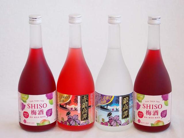 楽しむ鍛高譚4本セット(しそ焼酎鍛高譚20% SHISO梅酒12% 赤鍛高譚20%) 720ml×4本