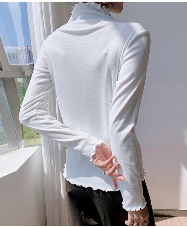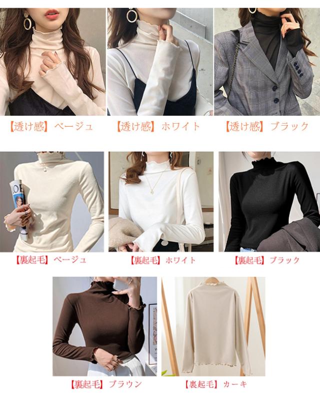 【10%OFFで718円!&2点目200円OFFクーポン!】2type 透け感/裏起毛 トップス シースルー カットソー インナー レディース 長袖 薄手 重ね着 トップス タートルネック レイヤード コーデ 無地 柔らかい OL 通勤 オフィス フリルネック 着痩せTシャツagesugi_sfa