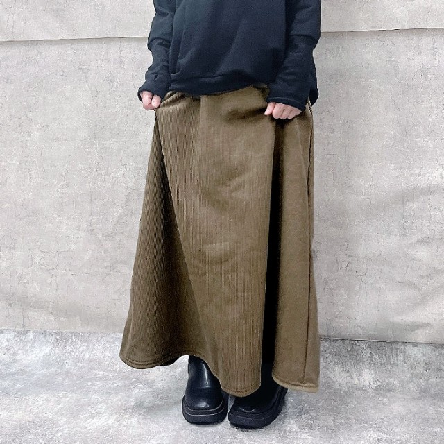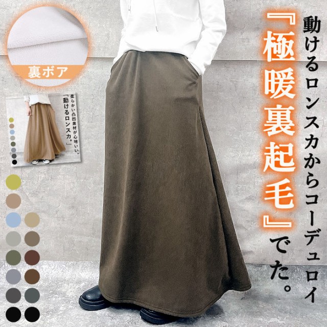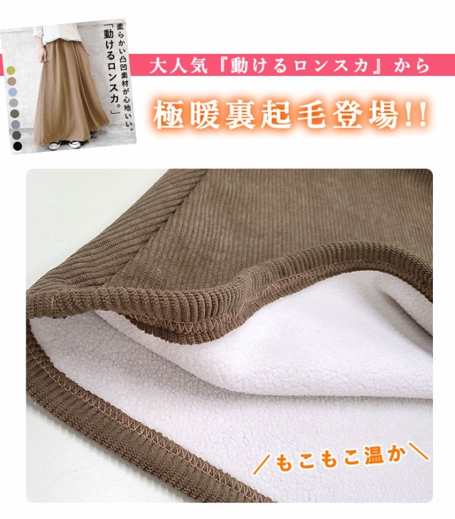 裏起毛 ロング フレアスカート ゴム コーデュロイ レディース(送料無料)^b426^