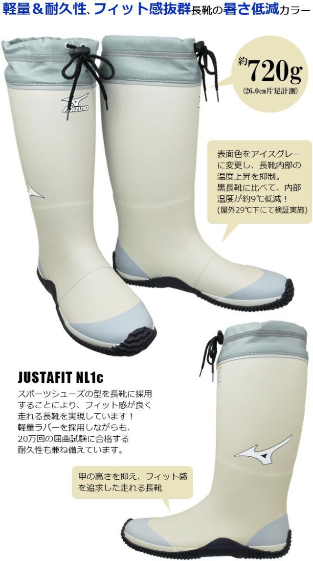 ミズノ 長靴 暑さ軽減タイプ ワークブーツ ジャスタフィット NL1c 先芯なし F3JBN211 ロングタイプ MIZUNO JASTAFIT メンズ レディース 防水 ラバーブーツ レインブーツ 作業靴