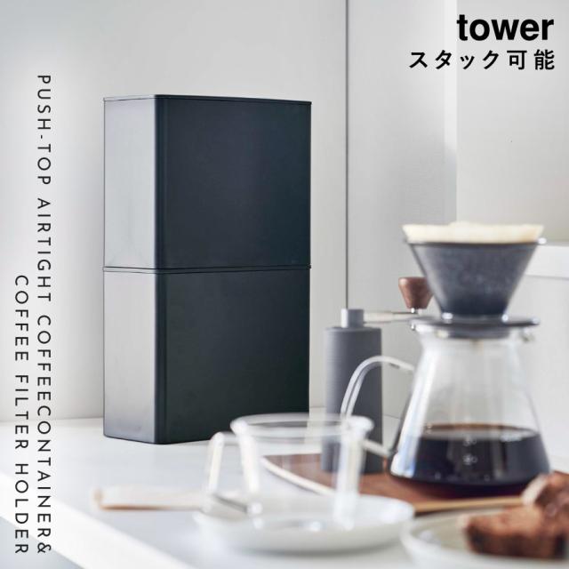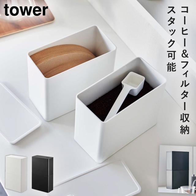 コーヒーフィルターケース コーヒーフィルター 収納 ホルダー コーヒー 粉 保存容器 キャニスター 山崎実業 tower タワー バルブ付き密閉コーヒーキャニスター&フィルター収納ケース タワー