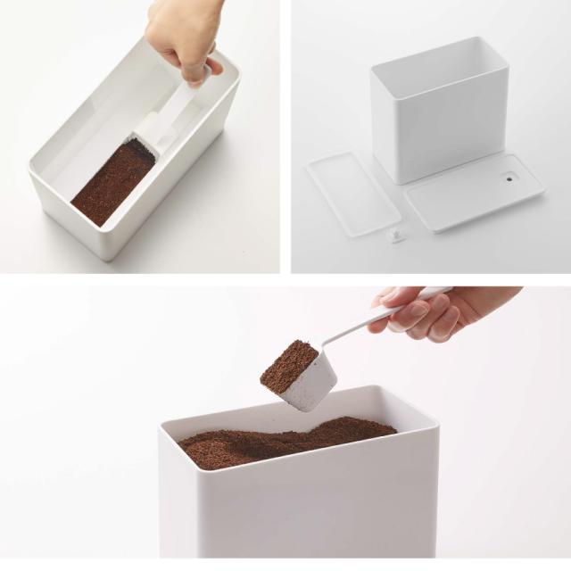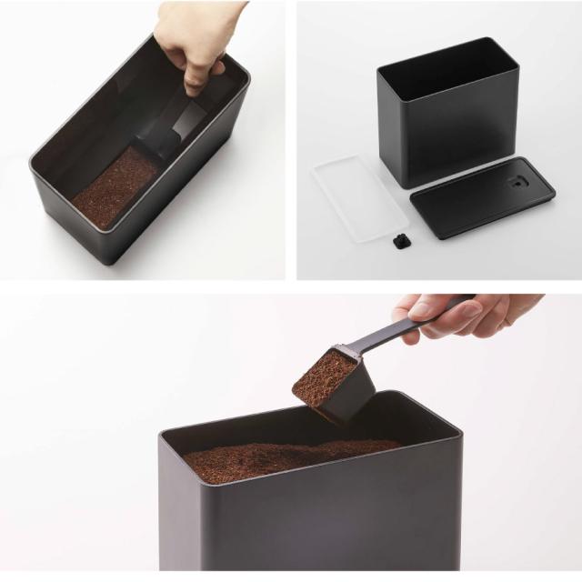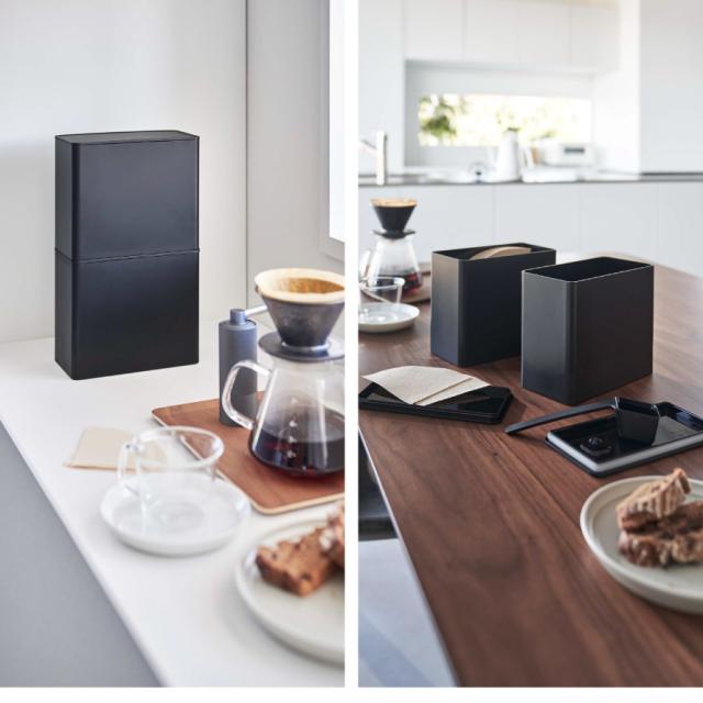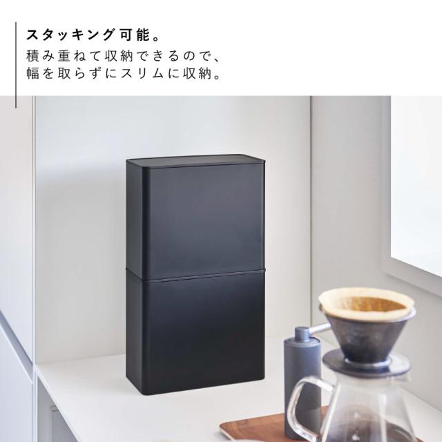 最後までコーヒー粉がきれいにすくえるコーヒーキャニスターと大容量フィルター収納ケースのセット。積み重ねて収納できるので、幅を取らずにスリムに収納!