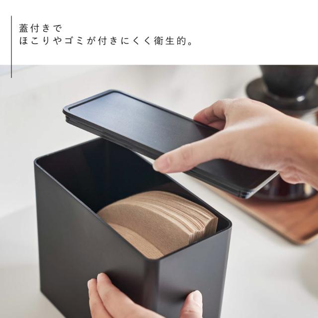 コーヒーペーパーフィルター収納は蓋付きでほこりやゴミが付きにくく衛生的。