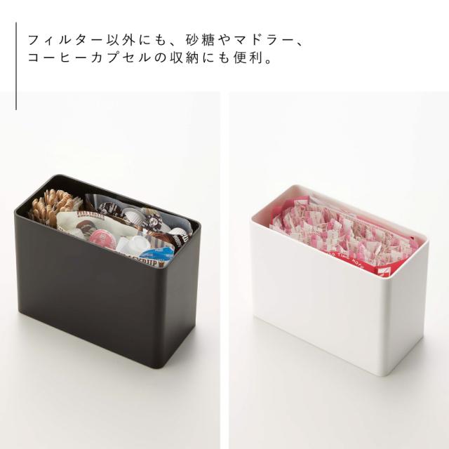 フィルター以外にも、砂糖やマドラー、コーヒーカプセルの収納にも便利です。