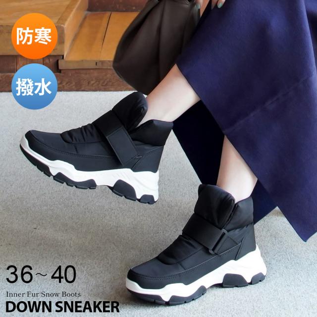 スノーシューズ 歩きやすい 履きやすい ダウンスニーカー スニーカーソール スノーブーツ 6センチヒール 滑らない レディース あったか ボリュームソール マジックテープ 雪 防寒 撥水 送料無料 HT10332 アミアミ あみあみ amiami