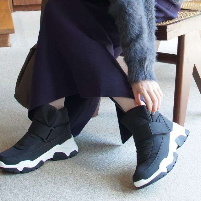 スタイリッシュなスニーカーソールで、モードに仕上げた防寒ブーツ