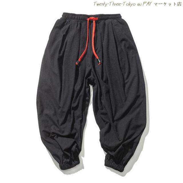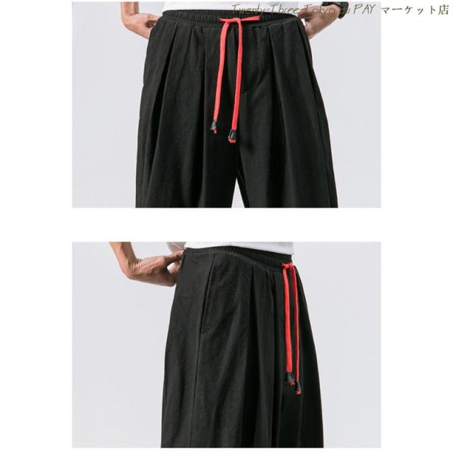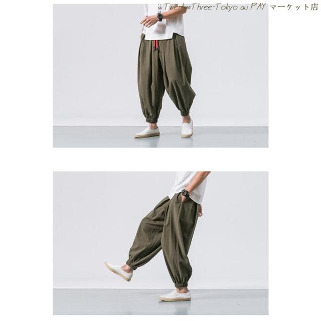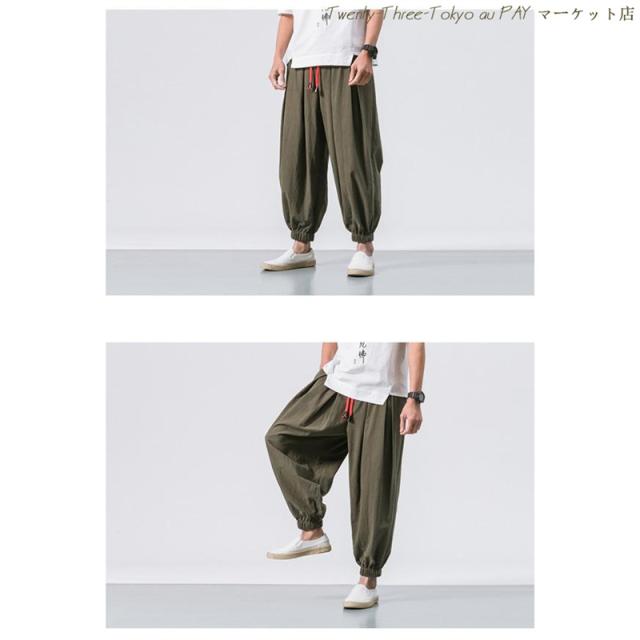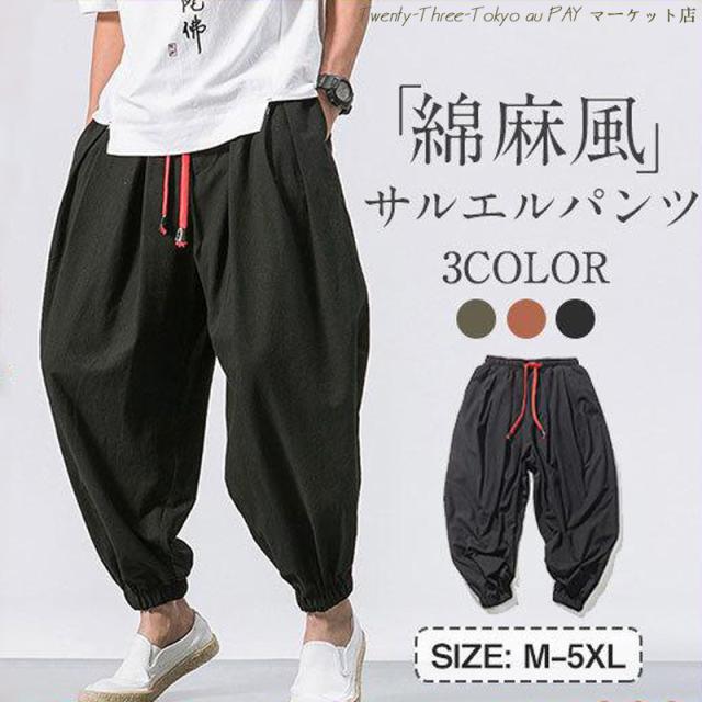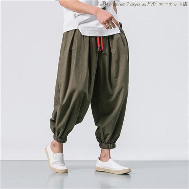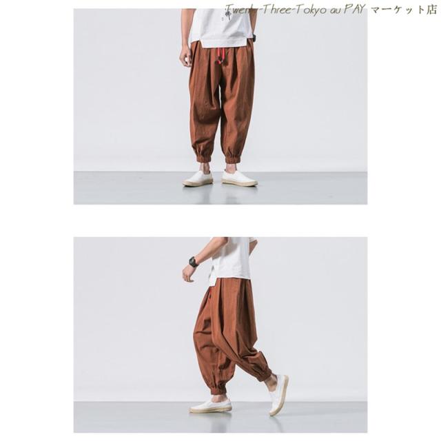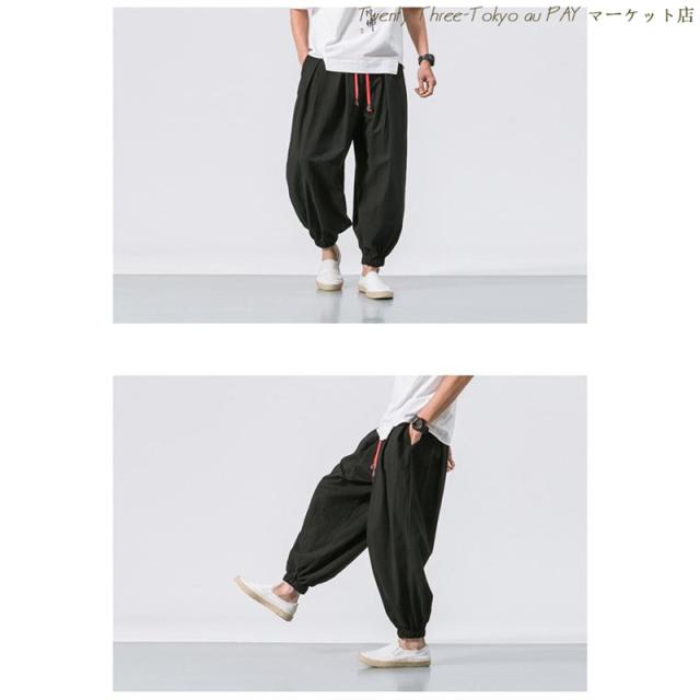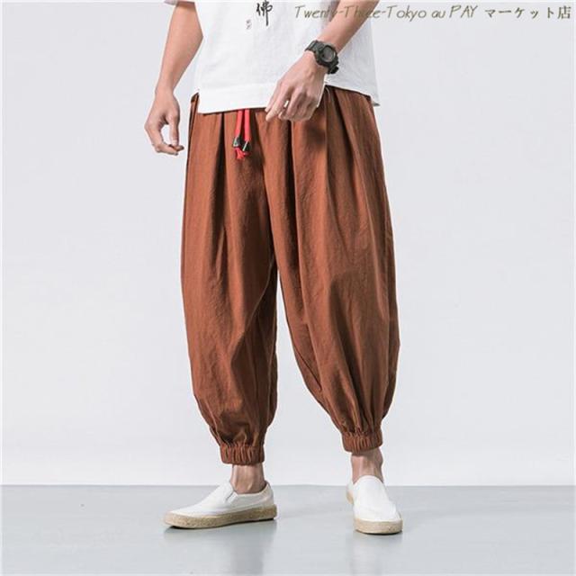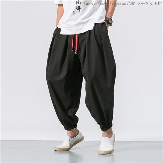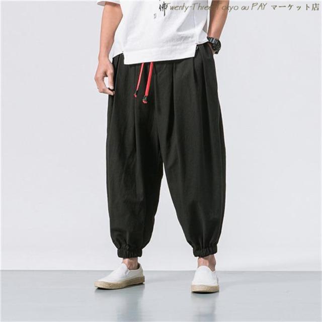 送料無料 サルエルパンツ メンズ ロング ワイドパンツ ズボン 綿麻 パンツ 薄手 リラックス パンツ カジュアル ナチュラル ボトムス 大きいサイズ