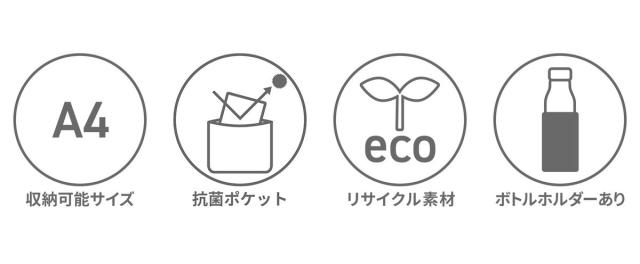 | 素材 | <表地> リサイクルナイロン100dnツイル/PVC加工 <付属> 牛革 |