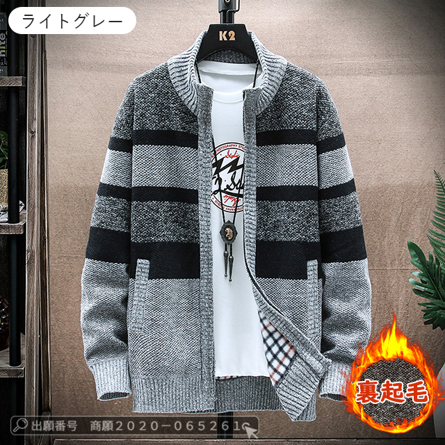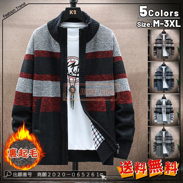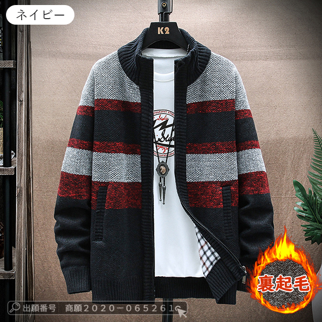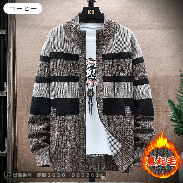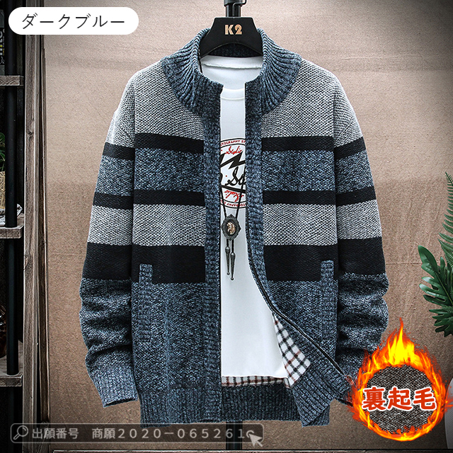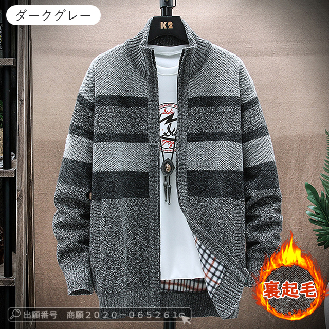 最安挑戦 冬新作 送料無料 新作 ジャケット メンズ カーディガン 裏起毛 ニット セーター カジュアル ニット カーディガン ビジネス 春服 ゆったり カーディガン ジャケット ストライプ柄