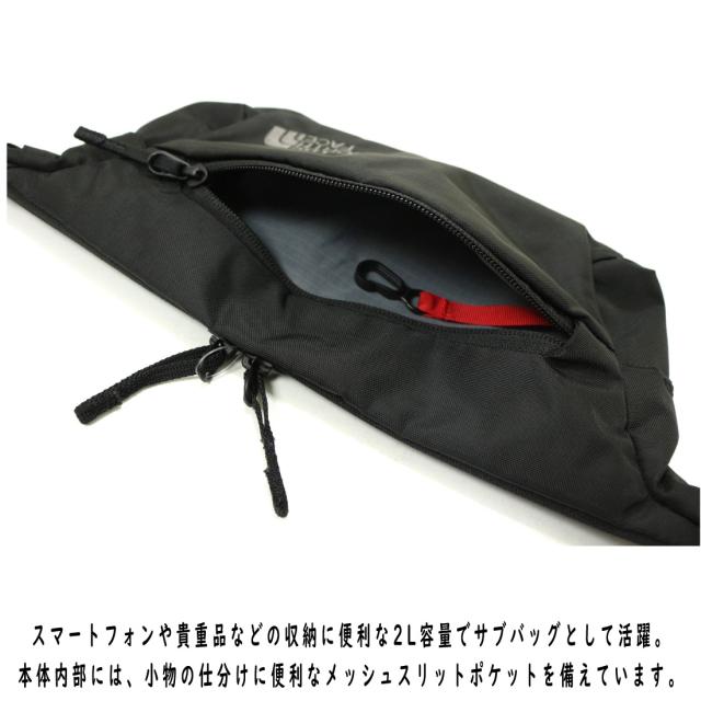 スマートフォンや貴重品などの収納に便利な2L容量でサブバッグとして活躍。