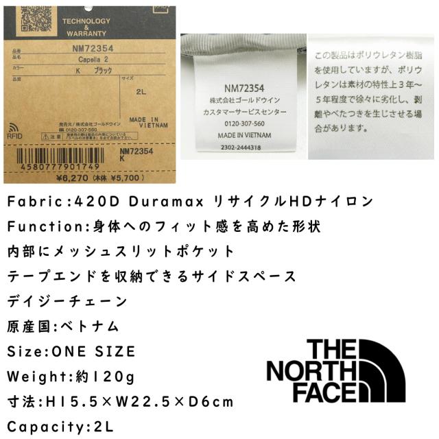 THE NORTH FACE ザ・ノース・フェイス Capella2 カペラ2 NM72354 ショルダーバッグ 国内正規販売店 アウトドア 2L容量 K ブラック