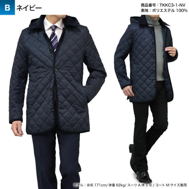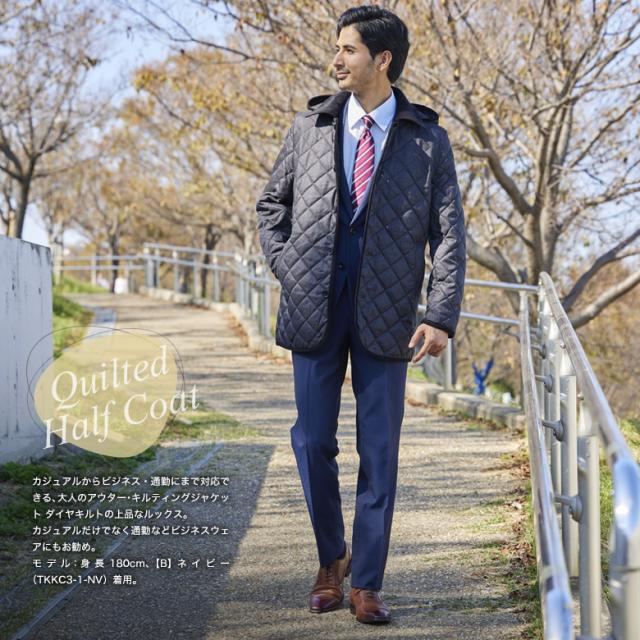 ビジネスコート 秋・冬・春 キルティング ダウンコート ハーフコート ブラック・ネイビー M・L・LL・3L メンズコート コートメンズ) こくぼ コクボ KOKUBO