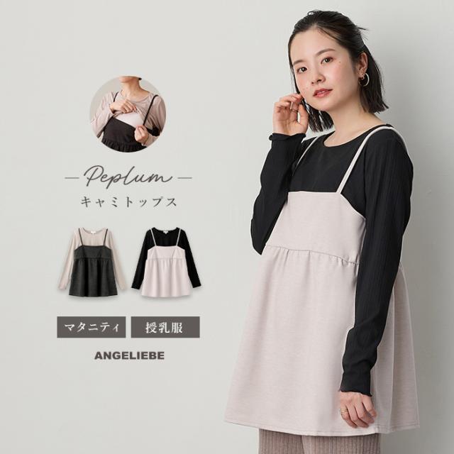 ニットカルゼ×テレコ起毛ペプラムキャミトップス マタニティ・産後授乳服【出産後も長く使える】Rosemadame(ローズマダム)