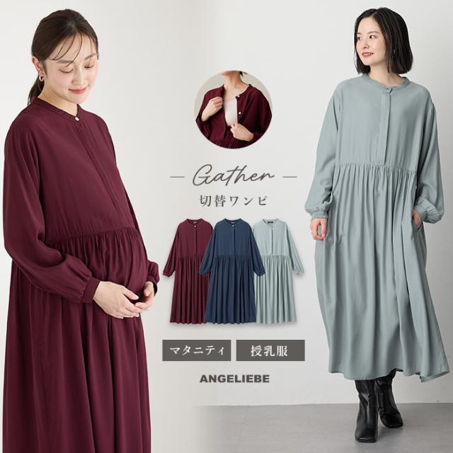 ウエスト切替ギャザーワンピース マタニティ・授乳服【出産後も長く使える】