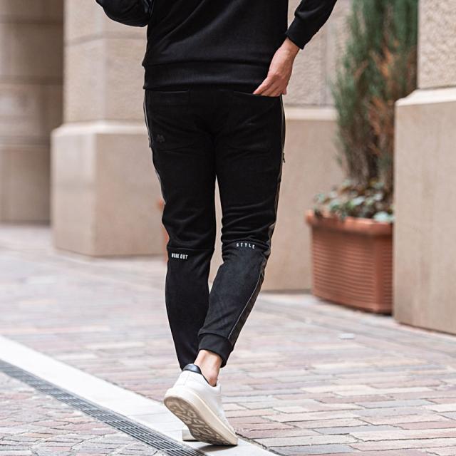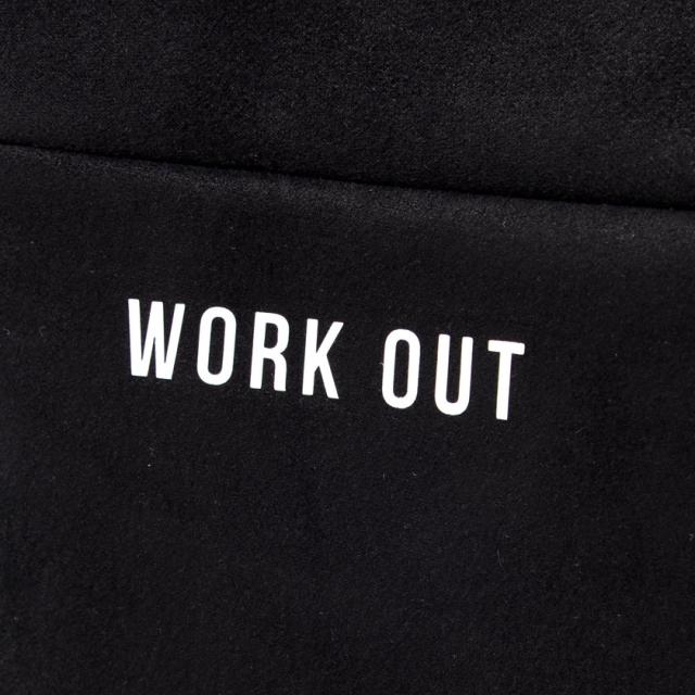 おしりのポケットにはラバーロゴが、膝部分にはWORK OUT STYLEがプリントされています。