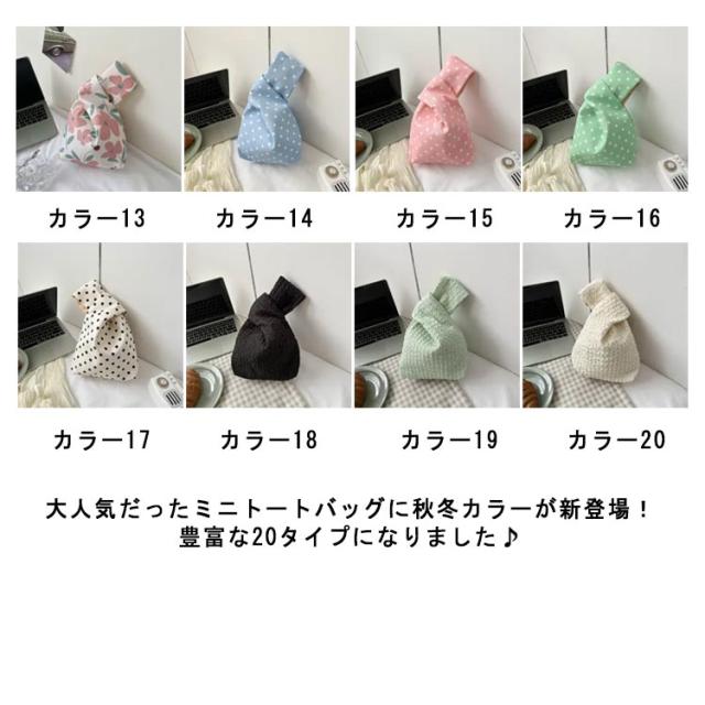 | 大人気だったミニトートバッグに秋冬カラーが新登場!豊富な20タイプになりました♪ シンプルなコーデのアクセントにしたり、ワンハンドルショルダー風にしたり、スタイルを変えればお洒落度もぐんとアップ。 サブバッグやお買い物時のエコバッグとして持つだけでパッと華やかに彩る!通勤通学時のバッグとしてもOK! 小さめのサイズはサブバッグとしても◎今季注目のアイテムです! | |