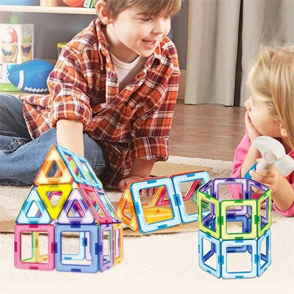 磁石の中心部が多角形同士を接続し、簡単に平面図形を作れます。